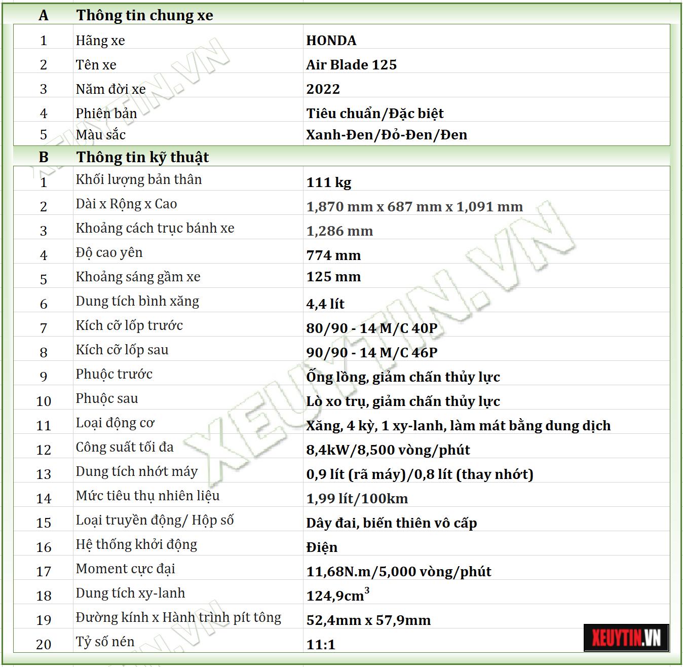 Thông tin xe