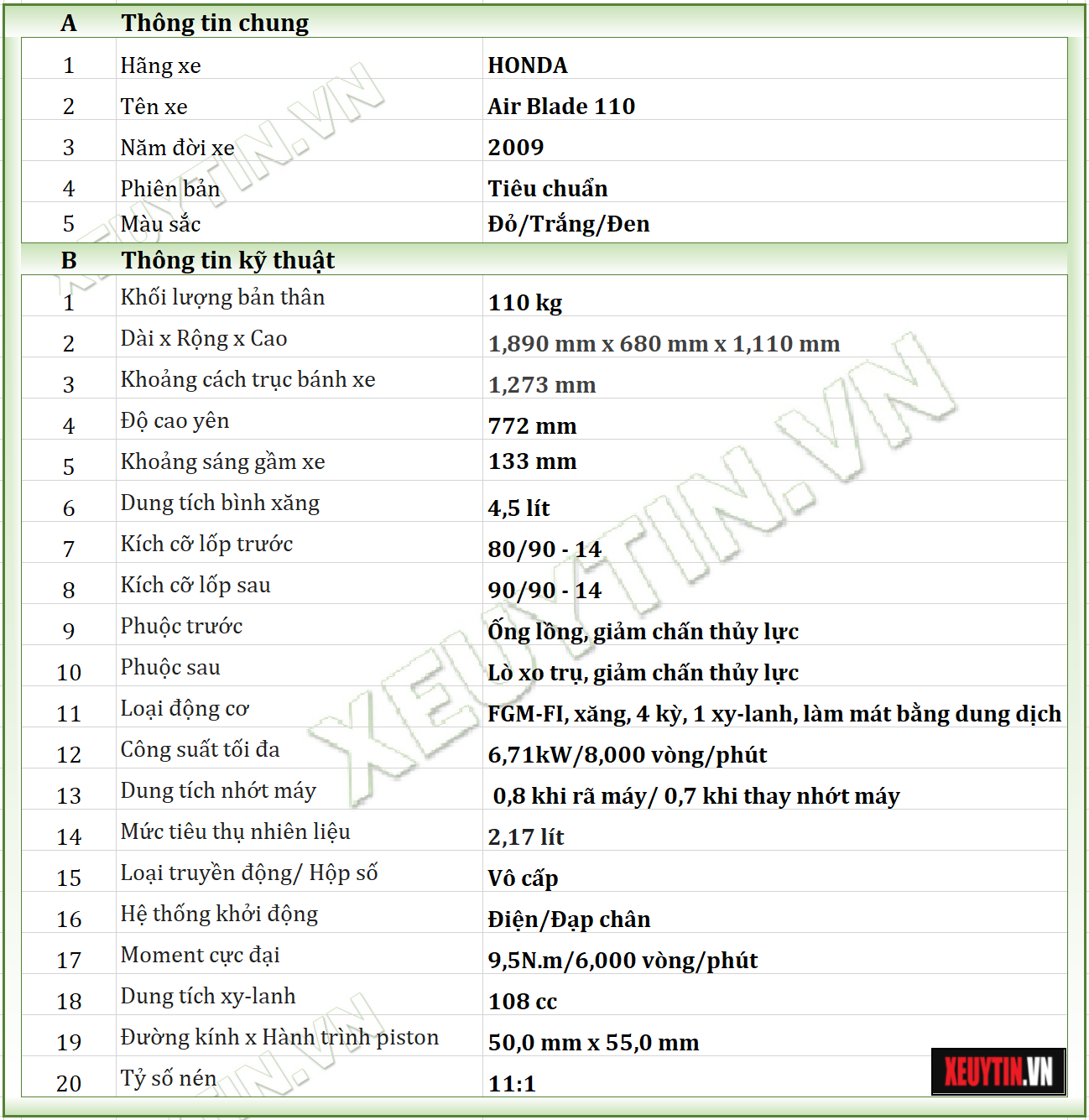 | Honda | Xe ga | Air Blade 110 - 2009 | Z... Khác | Đen Bạc |